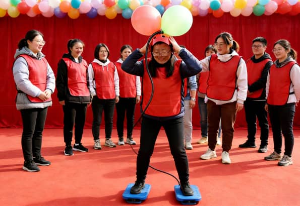 "顶上花开"是一项以团队协作为核心的充气爆破挑战项目,通过分组竞技形式强化成员间的默契与执行力。该项目要求参与者使用专用打气装置为头顶气球充气,直至达到爆破临界点,考验团队在高压环境下的操作精度与心理素质。
